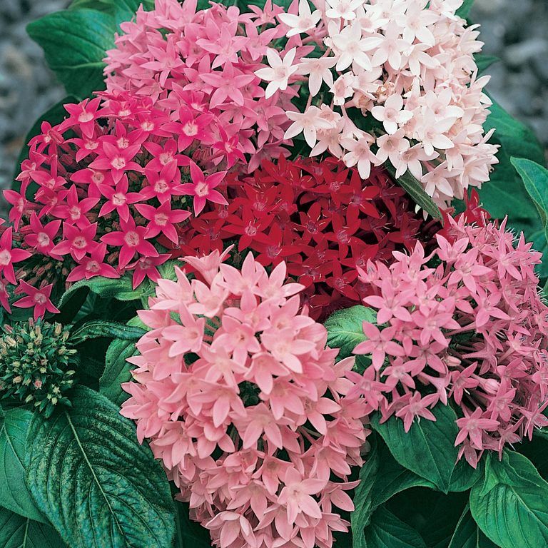 Pentas (Pentas lanceolata), also known as Egyptian Star Cluster, is a sun-loving flowering plant valued for its bright, star-shaped blooms that appear in clusters. Flowering continuously in warm weather, it produces vibrant shades of red, pink, white, and lavender. Pentas thrives in full sun, attracts butterflies and pollinators, and performs beautifully in garden beds, borders, and containers.